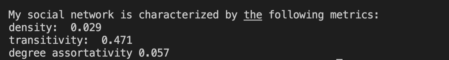 print('\nMy social network is characterized by the following metrics:')